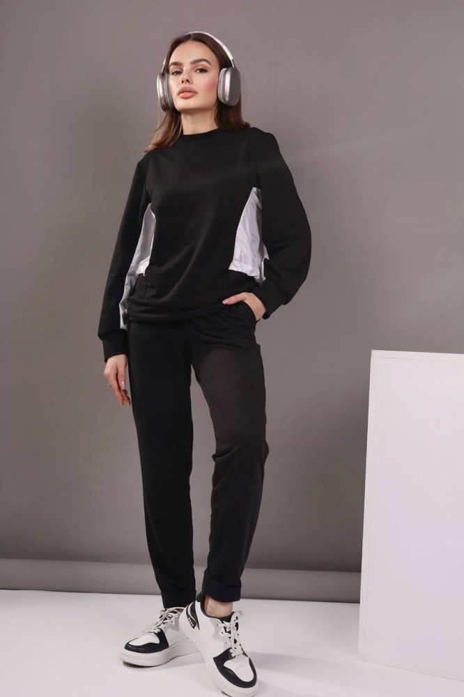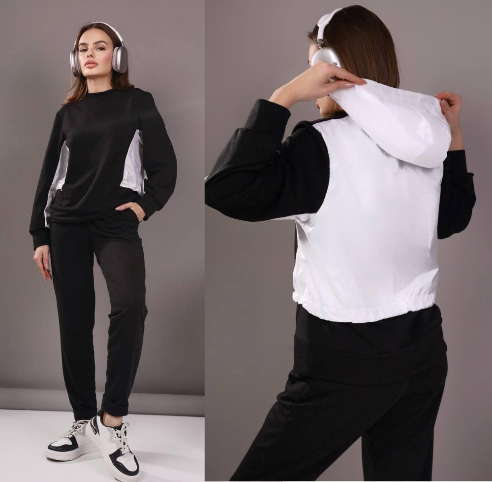 Костюм оригинальный двунитка с плащевкой черно-белый