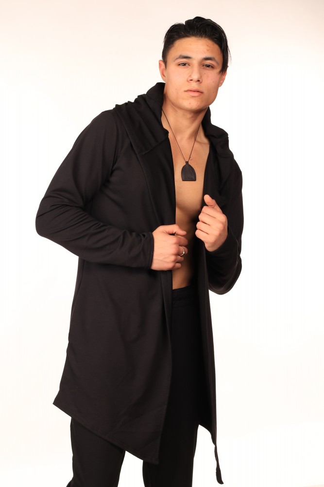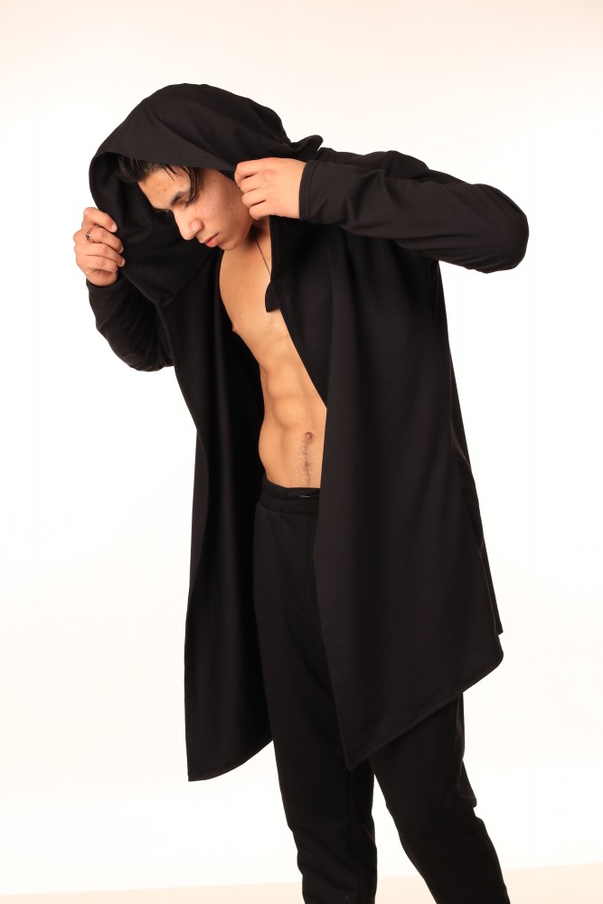 Мантия Quest Wear normal в чёрном цвете с врезными карманами и большим капюшоном.