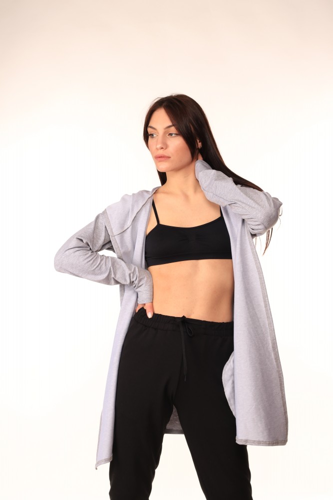 Мантия Quest Wear normal в сером цвете с врезными карманами и большим капюшоном.