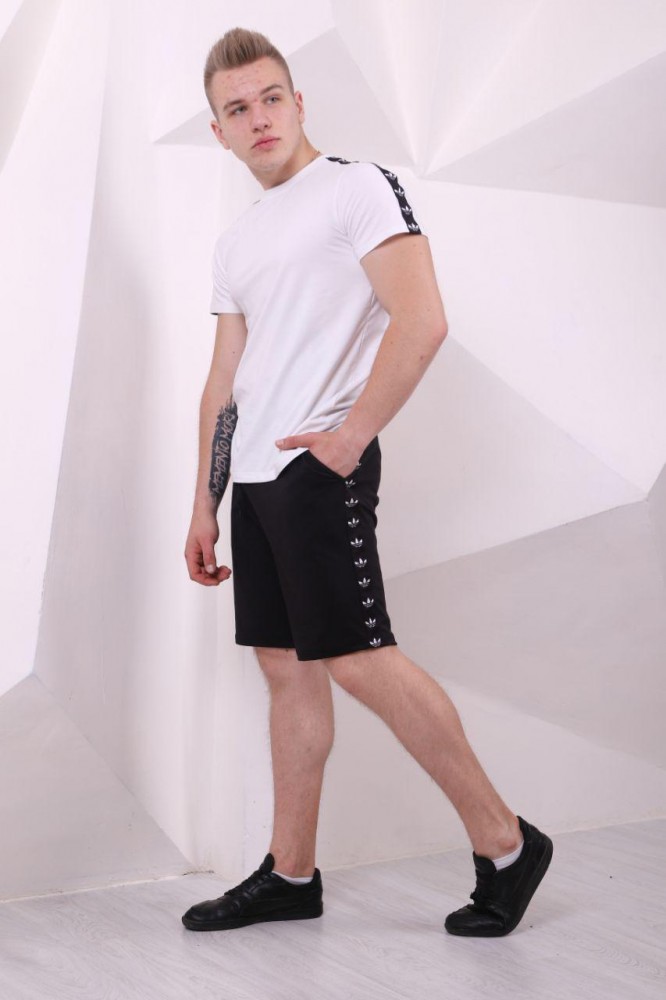 Шорты Adidas чёрные с чёрно-белыми лампасами