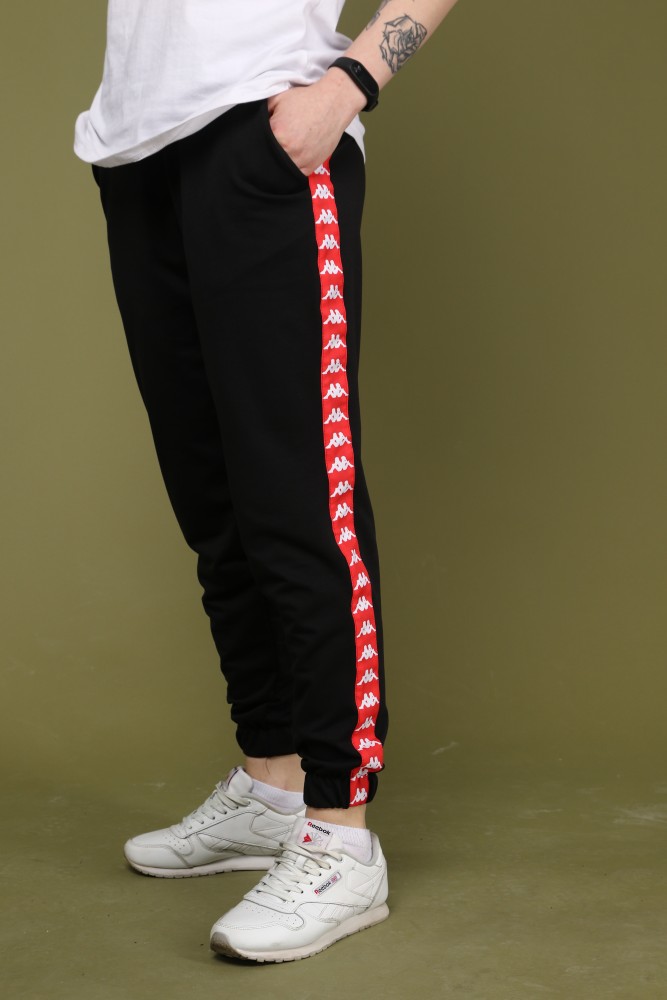Спортивные штаны в чёрном цвет с красным лампасом Карра.