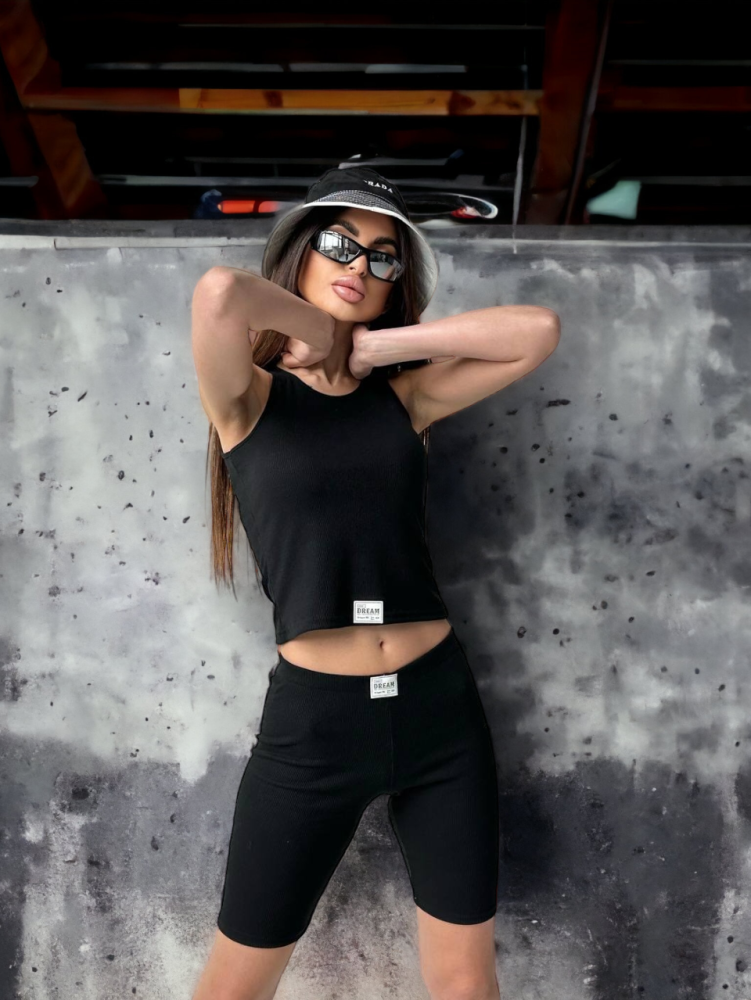 Будьте першим, хто залишив відгук “Женский спортивный костюм майка и велосипедки в рубчик черные”“