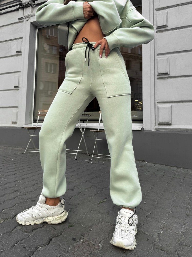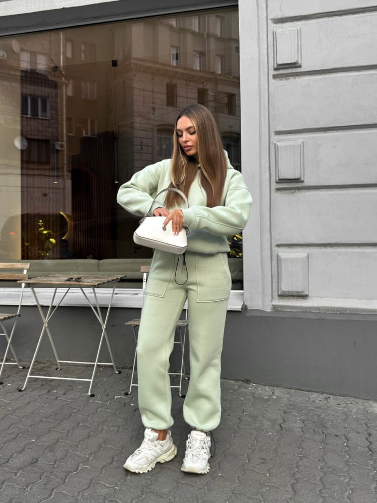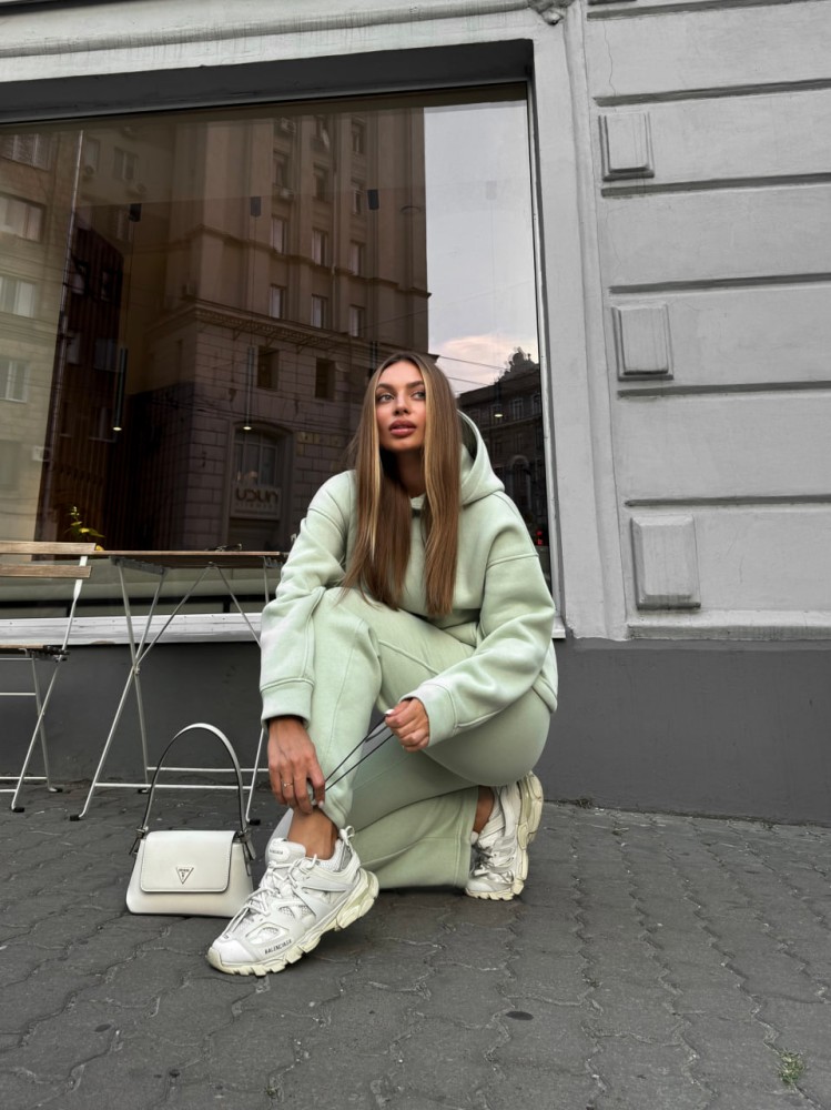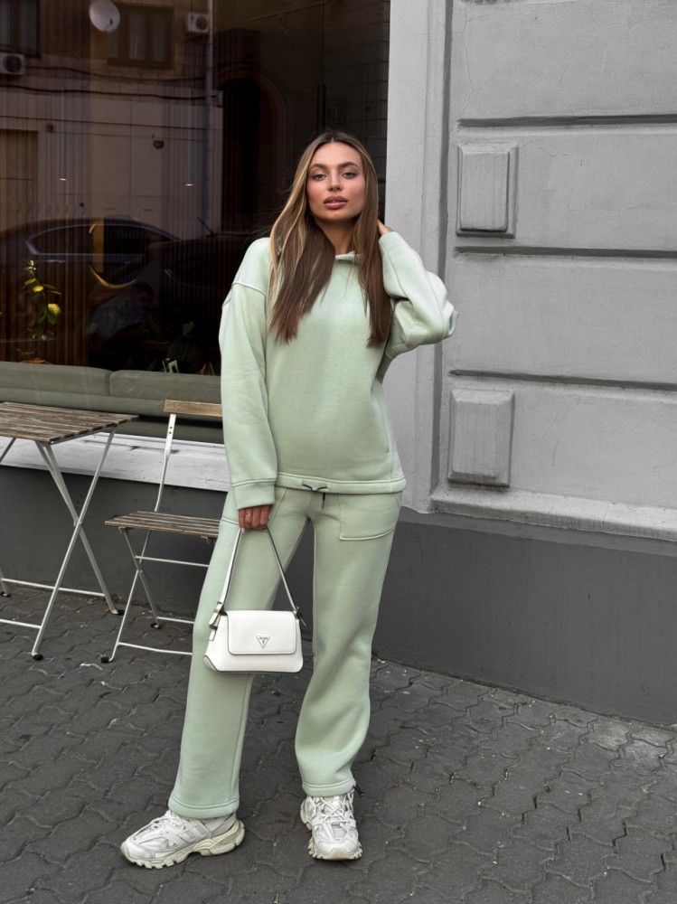 Будьте першим, хто залишив відгук “Жіночий зимовий оверсайз спортивний костюм із начісом Sanrado зелений м’ятний RD404”“